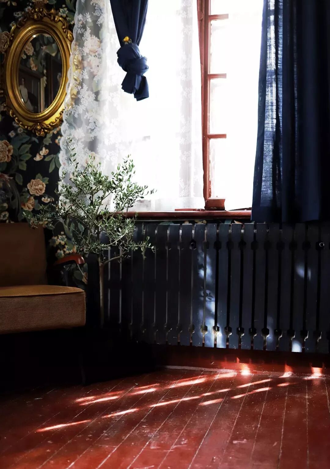 像上图这个深蓝色的墙虽然很复古,可是如果家里面积较小、或者采光不好,整个房间就会变得很沉重!