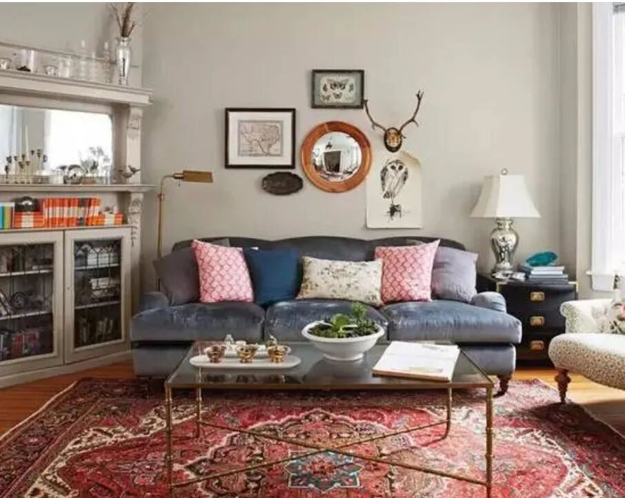 最后一个秘诀,针对地板毫无质感的情况,怎么装饰可能都徒劳无功~只能祭出地毯遮丑大招。