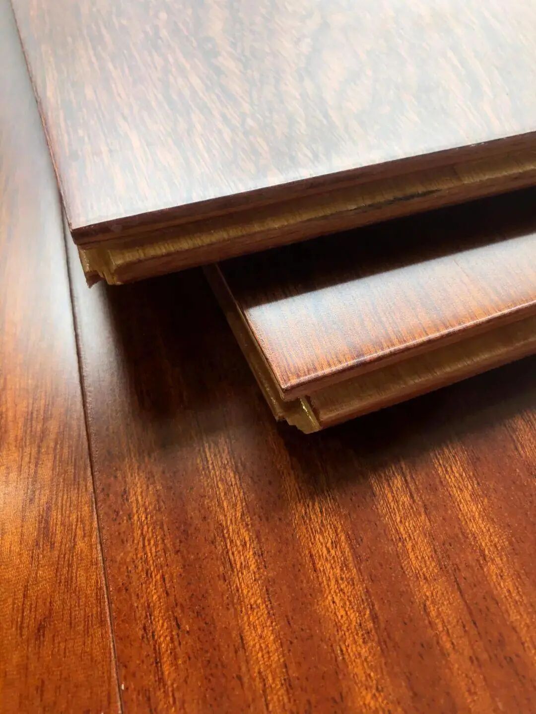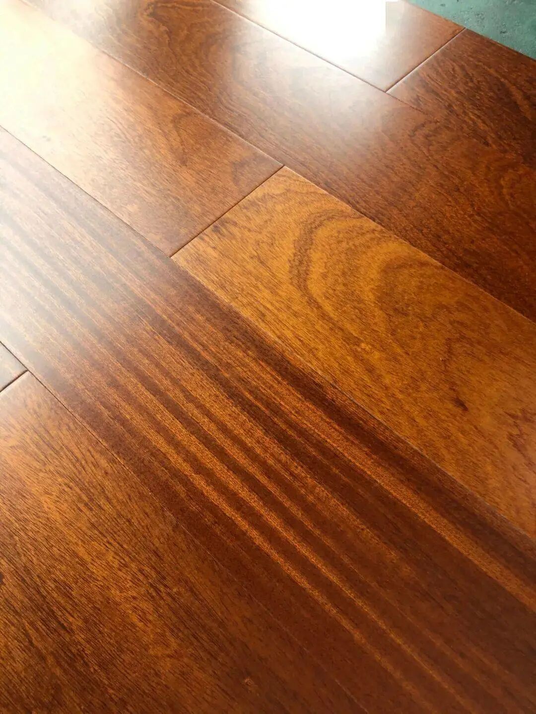 第二步是看纹理。木地板天然的纹理十分的清晰随性,加上厂家取材、锯切、选片、分等这些程序……基本找不到相同纹理的两片地板。