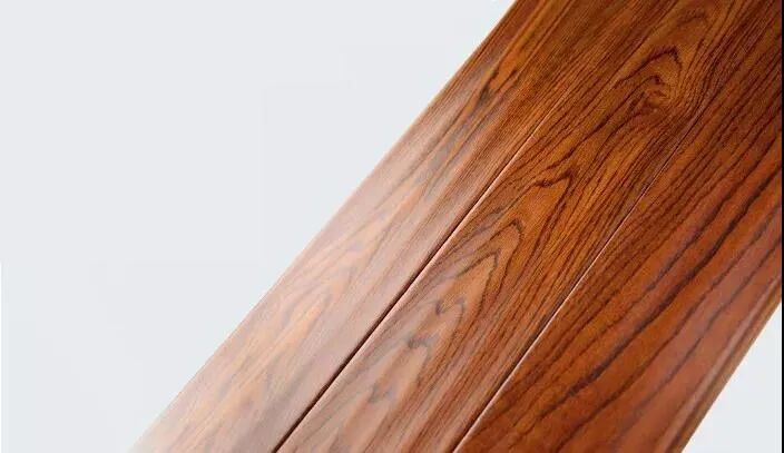 基层为木纤维胶合,表面为装饰纸+耐磨层。优点是耐磨+便宜,但环保性和自然质感会差一点,最关键的是泡水、受热易变性。所以安装地暖的家庭,不建议使用这种。