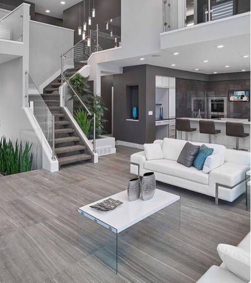 ► 小贴士:现代风的打造可以使用简单的黑、白、灰色的搭配加上直线条和冷色灯光。