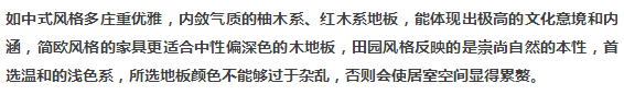 地板颜色的选择跟装修风格也有很大关系,装修的时候最好能提前确定装修风格。