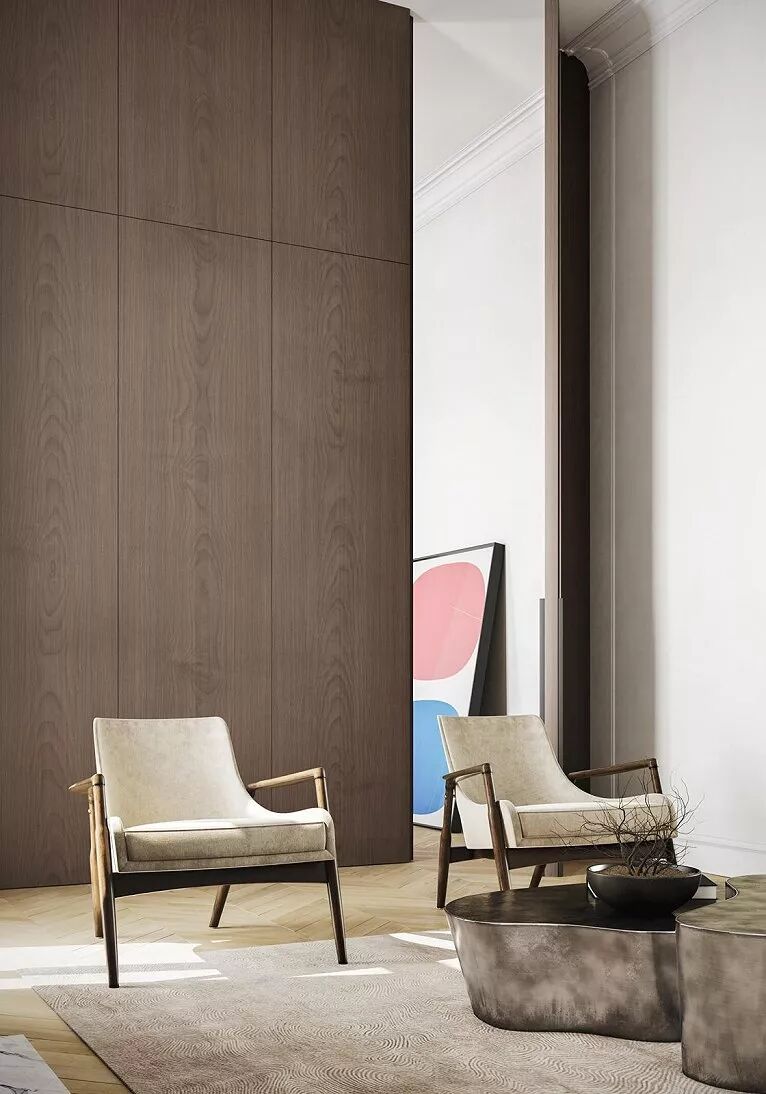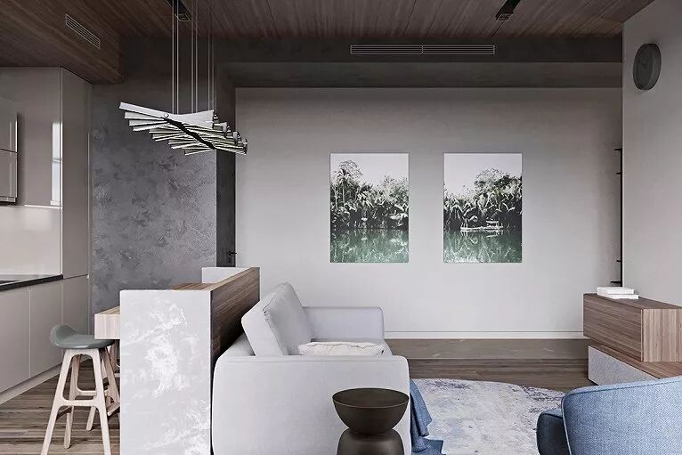 优雅的灰色调,与纯白、原木等空间色彩完美融合,空间感观舒适美观。