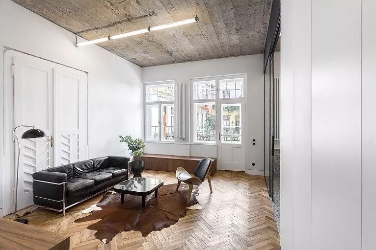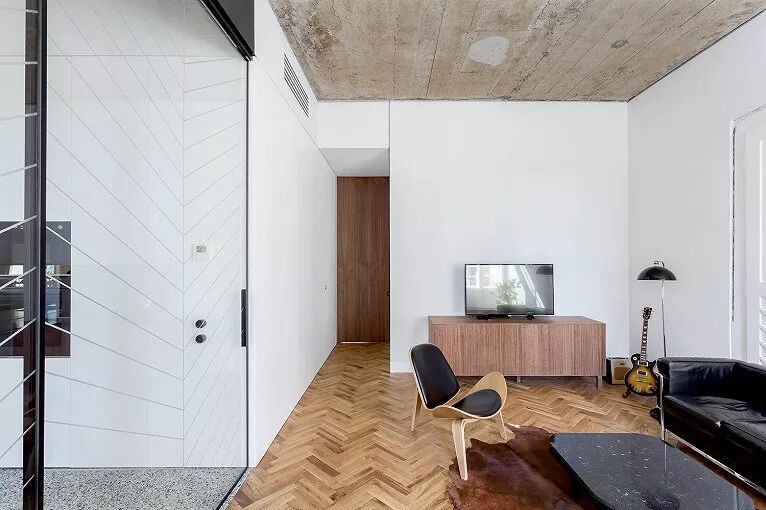 舒适的原木地板,冲淡了室内的清冷感,伴随洒落的阳光,静谧悠闲。