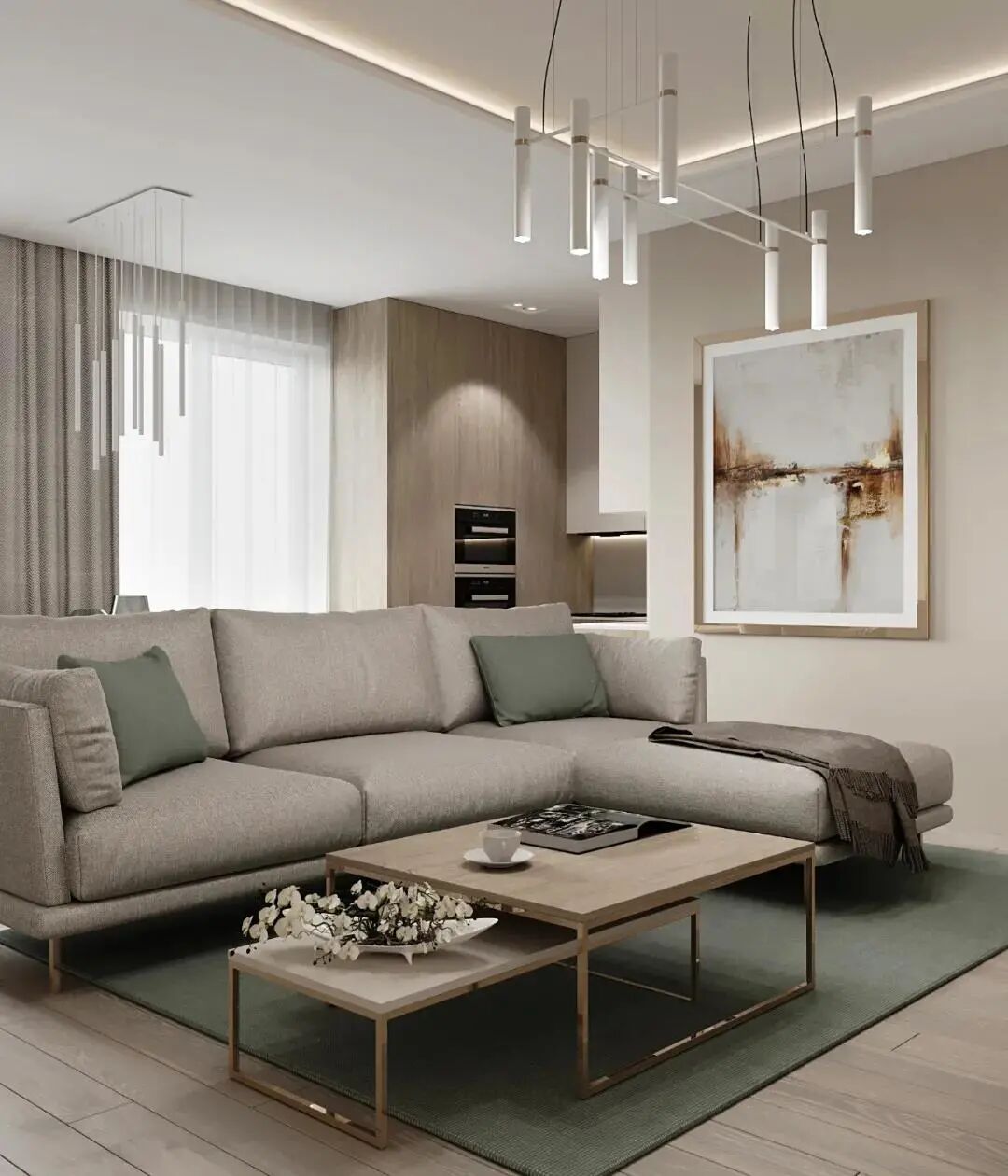 相反,选择中性色的地板不仅能扩大客厅的视觉效果,在阳光的照耀下还能彰显出温润的感觉。