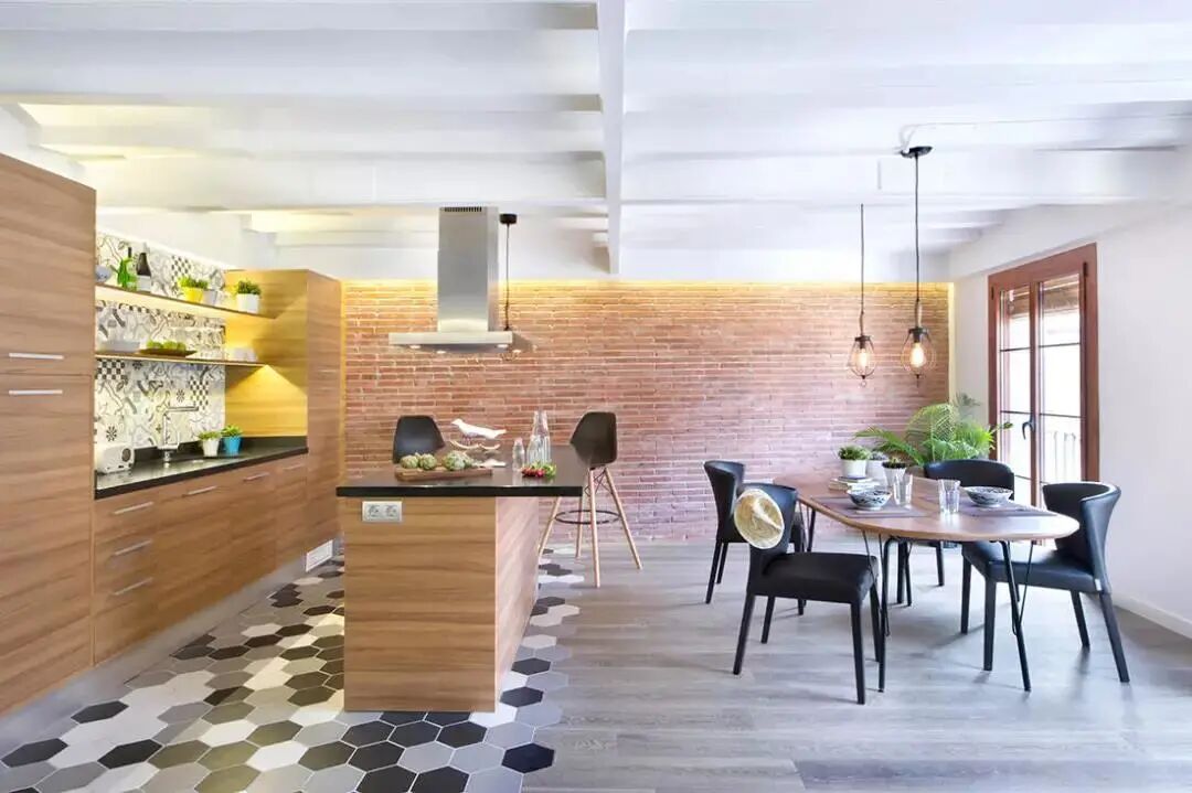 地板和瓷砖拼接的铺法,看似完全不协调的组合,却能混搭出独特的美感。