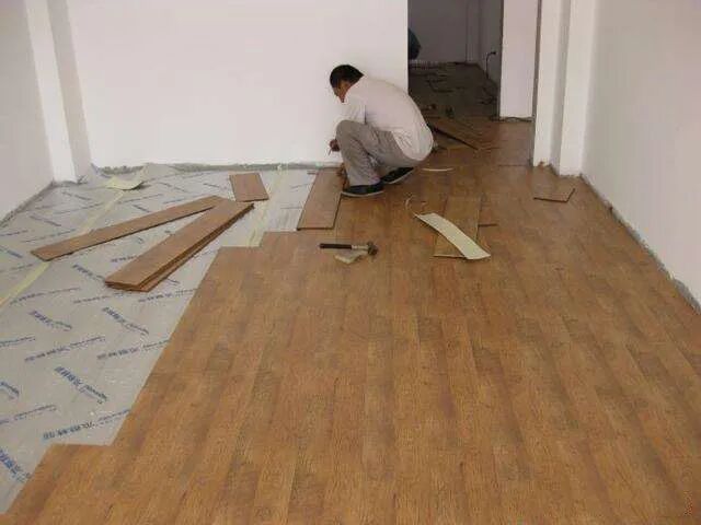 铺设地板防潮专用地垫,接头处用胶带粘接严实,基层面必须平整、干燥。