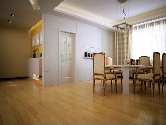 1.从一个墙角开始,自左至右铺,让有槽口的一边朝着房间。纵向的边和墙之间的距离,在铺好三排后可以再进行调整。