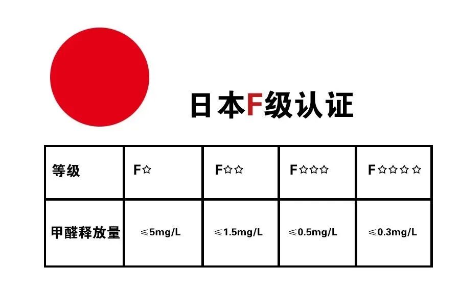 日本2003年7月起就在地板、人造板领域推出全球最高的F级标准,基于日本严格的社会安全监管体系,这一限量标准10年间提升了7次。