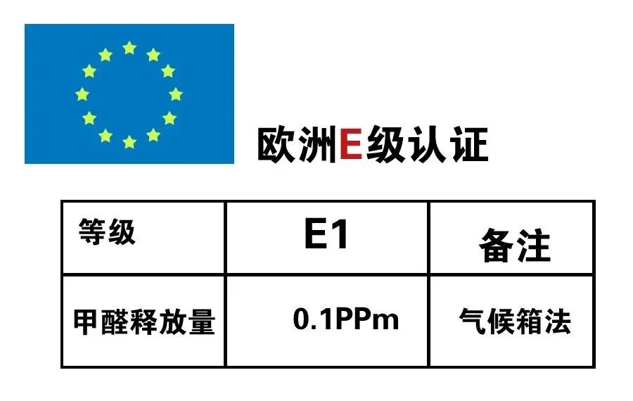 E级认证起源于德国,是指甲醛释放限量等级的环保标准并作为欧洲标准。今天,它已成为人们熟知的甲醛释放量等级标志。