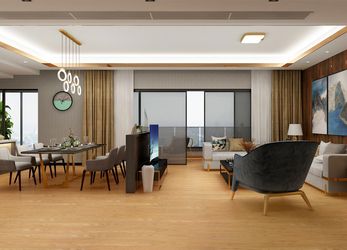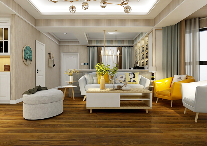 有孩子的家庭最好客厅也铺成木地板,夏天的时候小孩子一般喜欢光脚跑来跑去,地上是木地板的话可以避免小孩子脚受凉。冬天的时候木地板还会令人感到不是十分的寒冷。