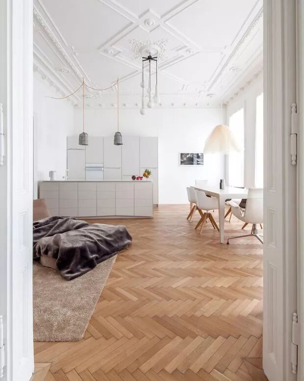 以前木地板只有工字拼一个拼法,普普通通,不出错也不出彩。现在很多家庭开始用有设计感、不规则的人字拼和鱼骨拼的方式让地板的最终效果变得立体有层次。