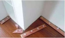 ③ 木质踢脚线阴阳角处应切割角后进行安装,接头处应锯割成45°固定。
