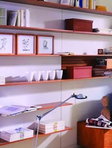 将剩余的地板切成相同大小的木块,然后打上两排孔,用绳索连接固定在墙上的支架上,就变成了一个极具创意的书架。