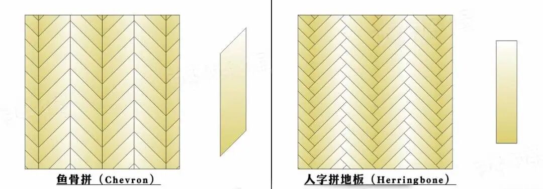 鱼骨拼和人字拼乍一看有些相似,有些人把它们归为同一种拼装方法,事实上完全不同。