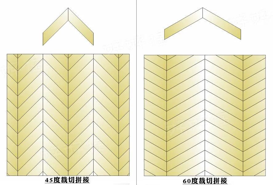 普通的地板生产出来都是长方形的直角边,而鱼骨拼地板是个菱形边,才能拼出 V 字的形状。