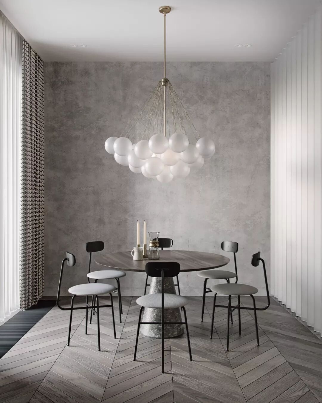 相较于人字拼,鱼骨拼在视觉上更具冲击力,原本横平竖直的空间有了斜切的线条,线条感十足,层次感也会立刻凸显出来,
