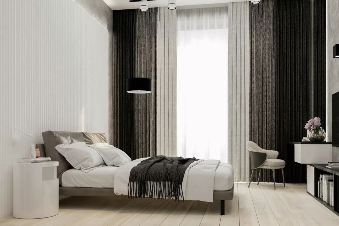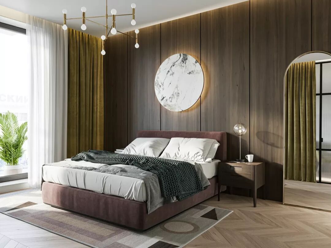 卧室木地板铺装方向,通常选择垂直于床具,以纵横交错的线条与纹理,增强空间的层次感,让卧室显得更饱满。