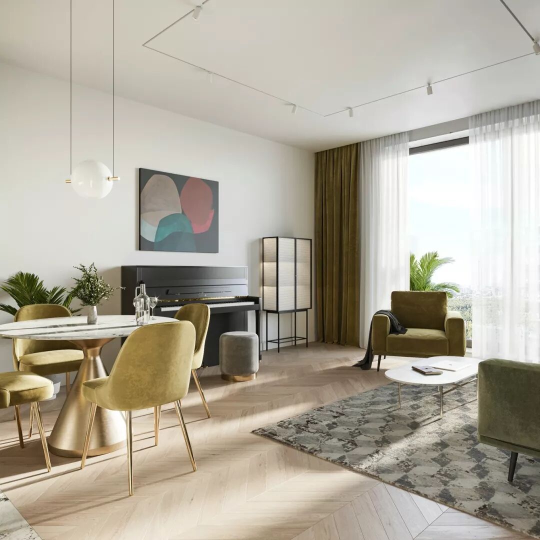 温暖而明媚的阳光,透过敞开的窗子,由外及里洒下室内,衬着同一方向延伸而来的木地板,层层递进,让空间的纵深感变得更鲜明,视觉上也会更开阔。