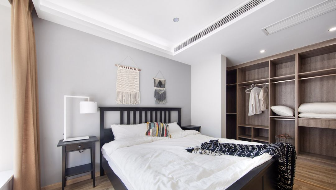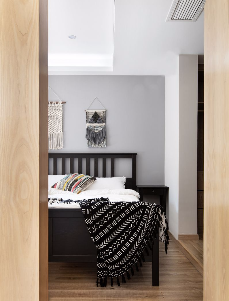▲ 主卧在材质上运用木质带来轻松自然的感觉,配以灰色调墙面,营造舒适的睡眠氛围。