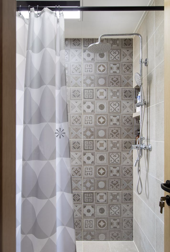 ▲ 卫生间干湿分离,双台盆设计方便孩子们洗漱,提高生活品质。将洗衣机嵌入浴室柜中,高效地利用了空间。