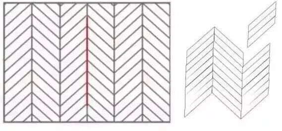 不同的是人字拼接的地板都是矩形,不需要裁切,比鱼骨拼省事儿一些。