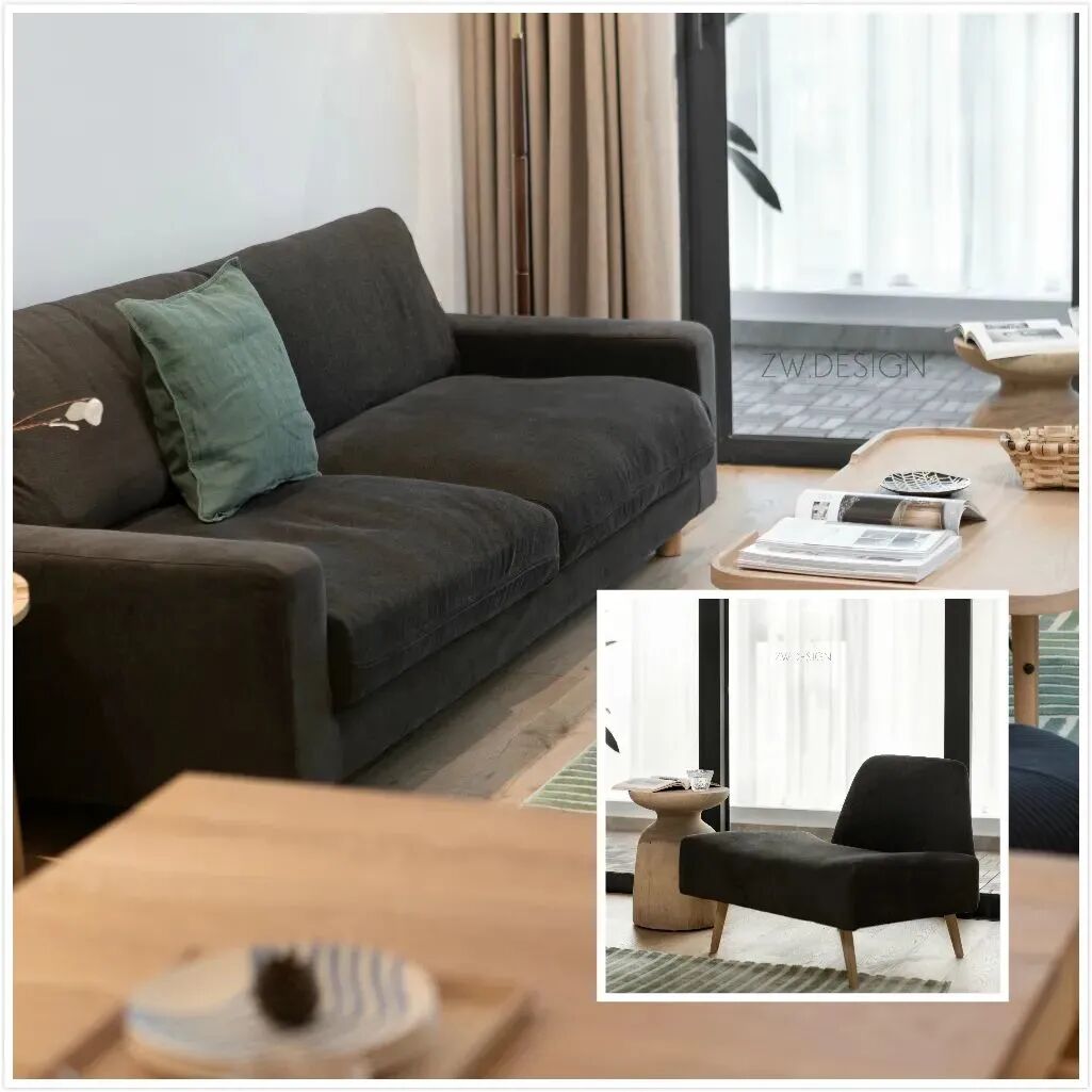 ▲改造后的客厅,以简约舒适的原木风为主,客厅地面换成了木地板,然后布置深灰色沙发,原木茶几搭配地毯的布置,整体空间感显得自然而温馨。电视墙以定制柜的设计,在靠窗位置预留出了空调柜机的摆放位置,保持整体空间的简洁与实用性。