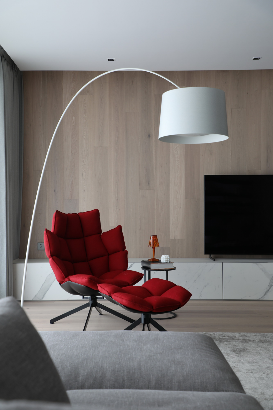 其次,几乎在本案的每个空间内,你都能寻获到一抹亮丽的红色身影,红色是最实在的颜色,永远都最热闹浓烈的存在......它着墨不多,却将整个空间串了起来。