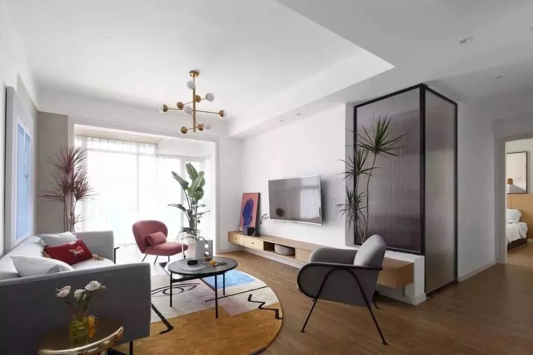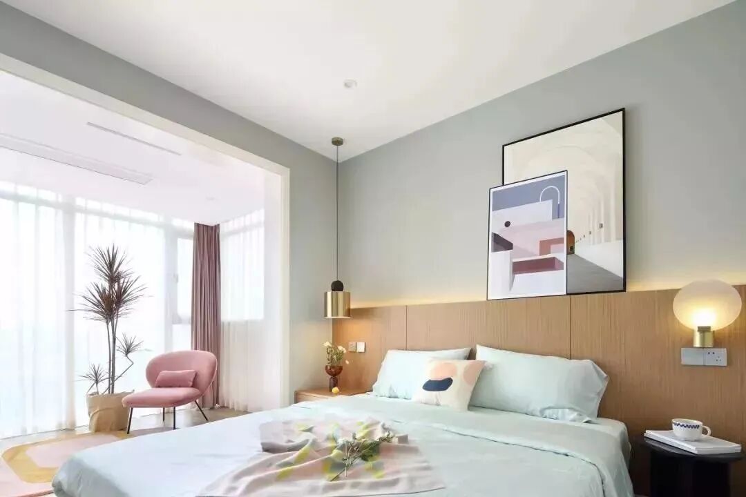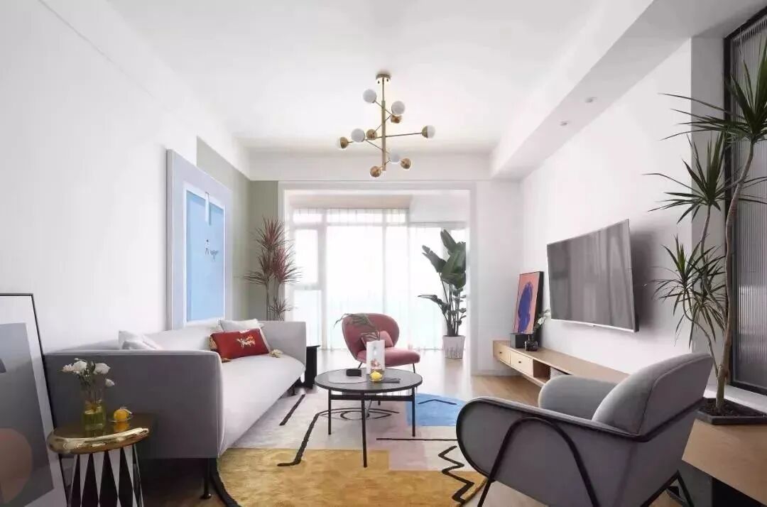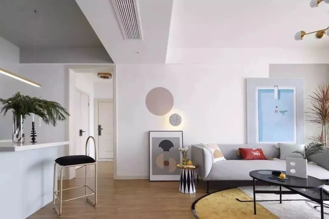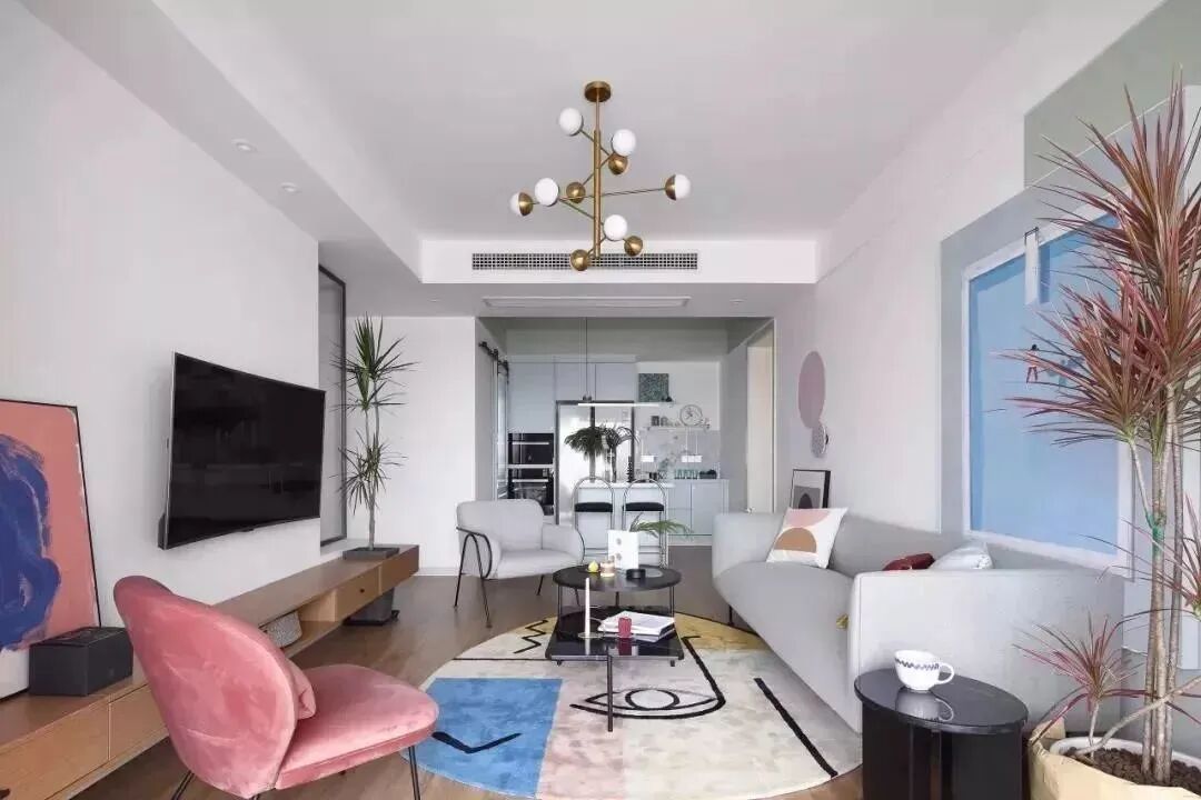 107平现代风格装修,马卡龙色+木地板,美炸了!