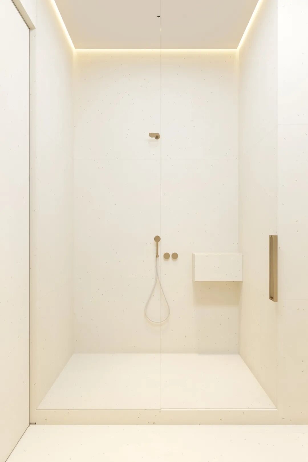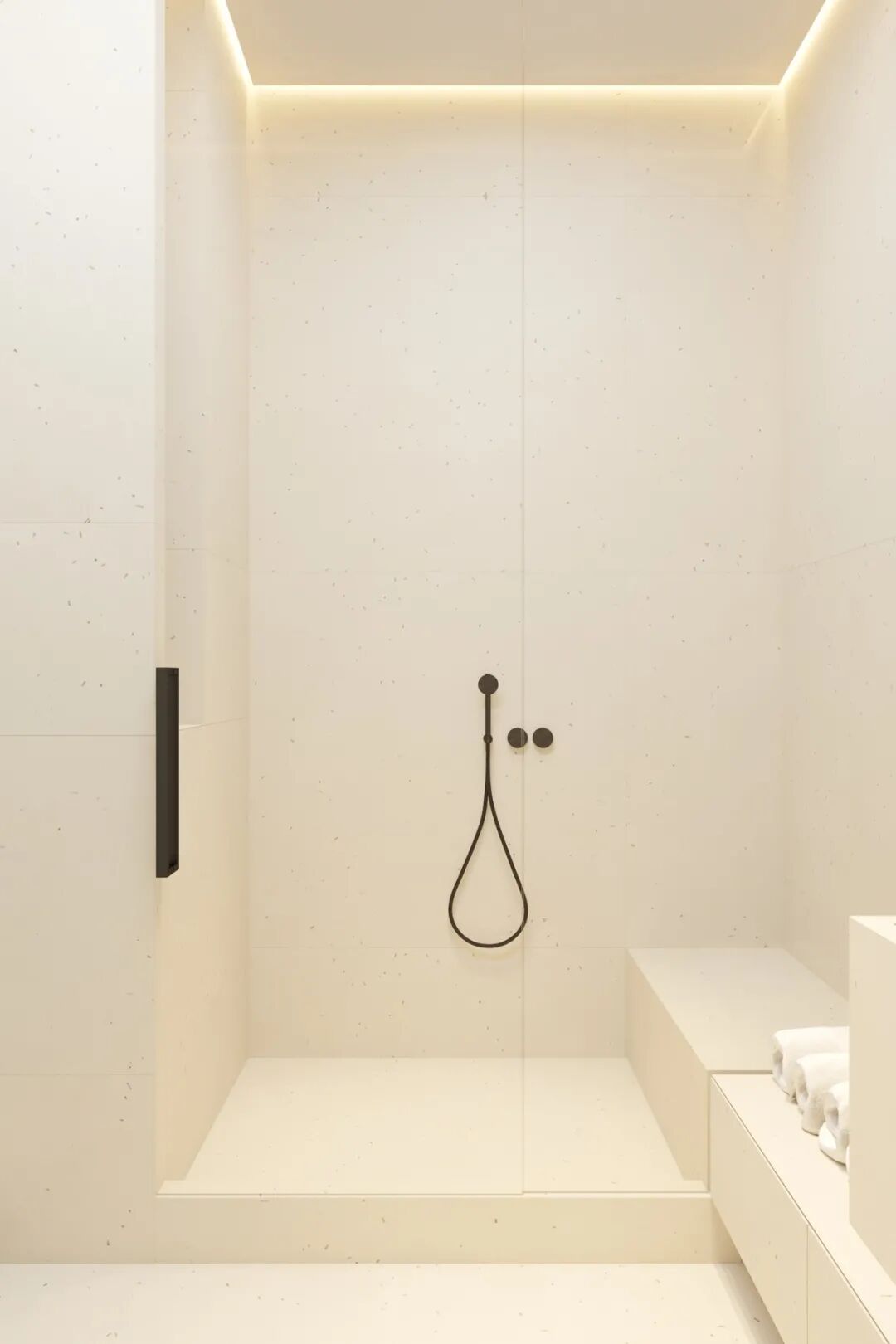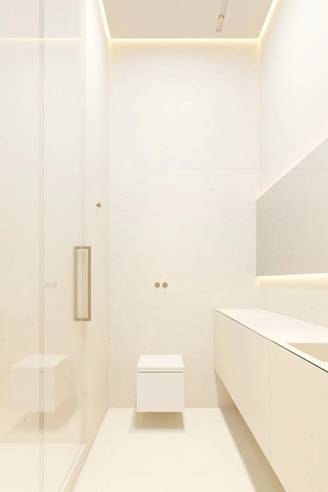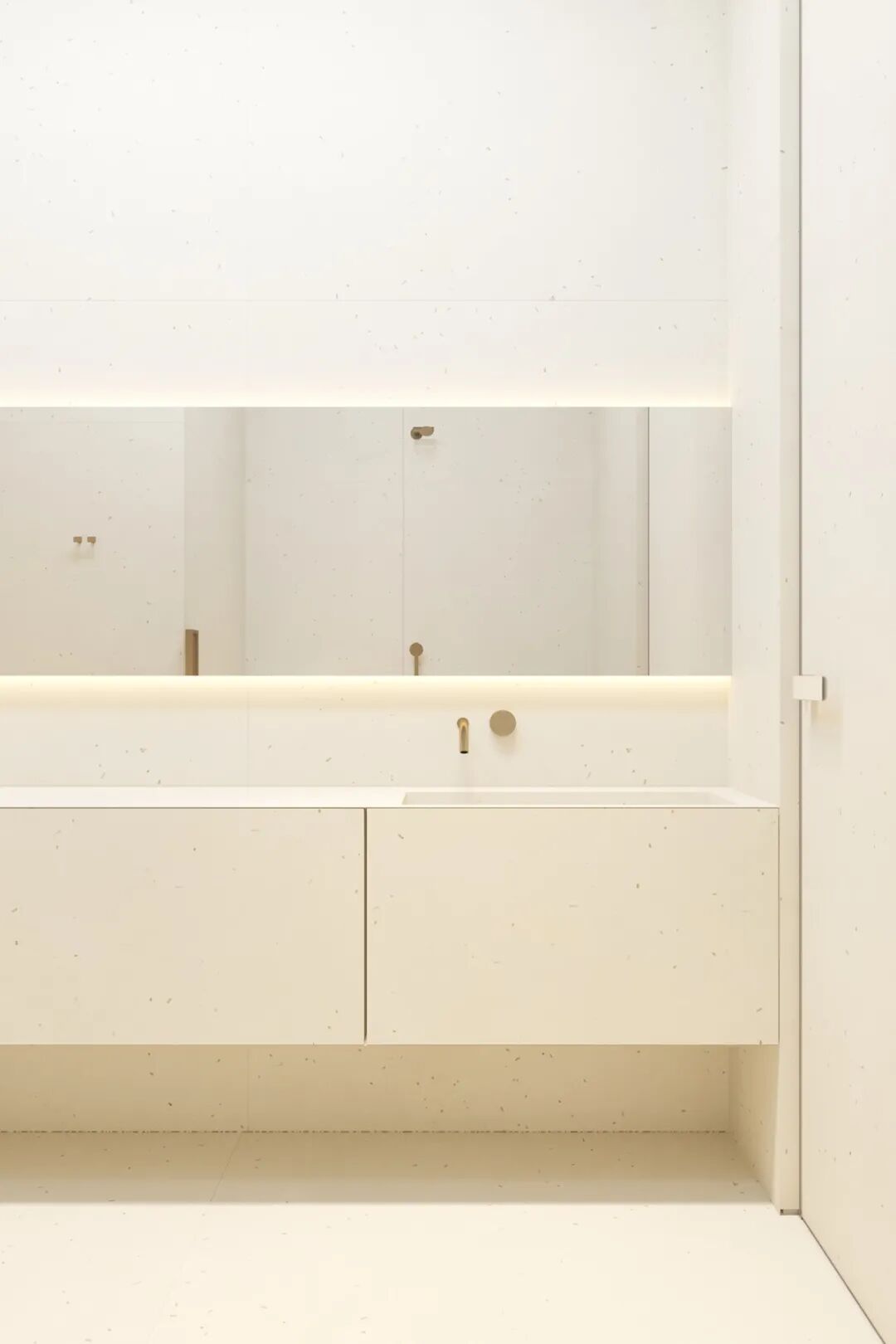 主卫空间灯光设计的非常棒,两个简约的洗手盆,不仅颜值高还兼具实用性,追求极简主义并不意味着拒绝设计的舒适性。