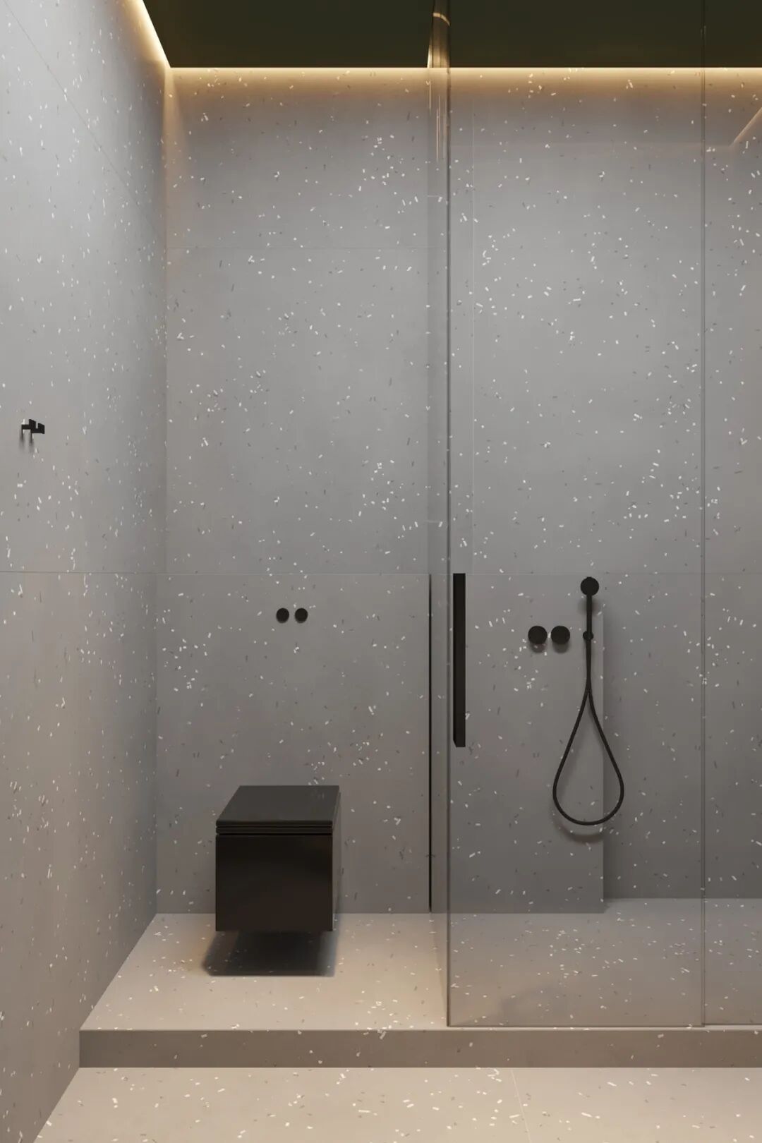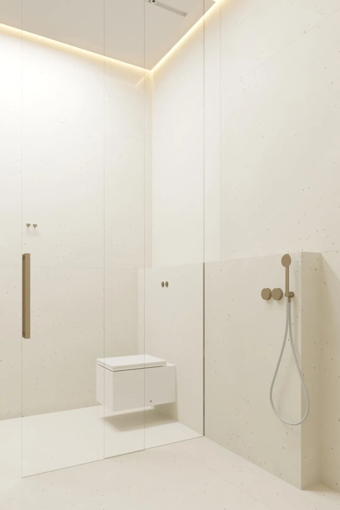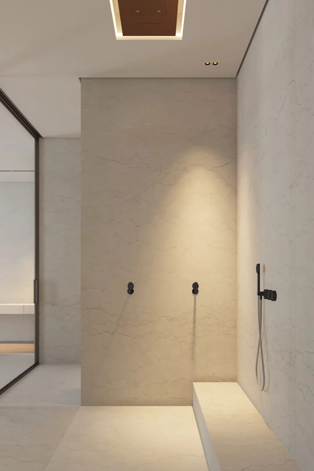 主卫空间灯光设计的非常棒,两个简约的洗手盆,不仅颜值高还兼具实用性,追求极简主义并不意味着拒绝设计的舒适性。