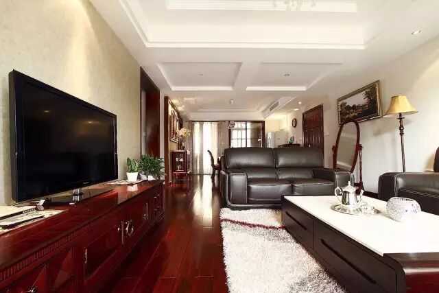 想在客厅铺木地板的话,其实更需要沙发茶几等家具的搭配衬托,这样才能把木地板的高档大气给衬托出来,否则的话还不如地砖好搭配!
