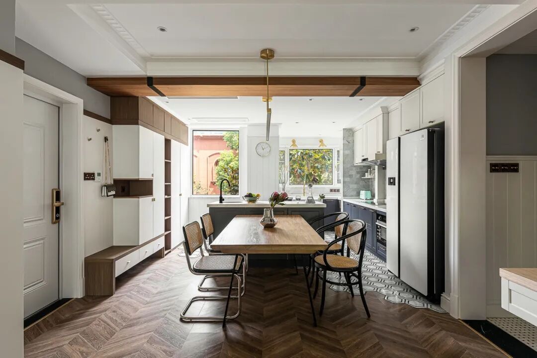 ▲ 通常在家里铺贴木地板的地方会是卧室,但我觉得其他开放空间,比如客餐厅、玄关也是适合铺上木地板的,现在的木地板也没那么容易损坏。