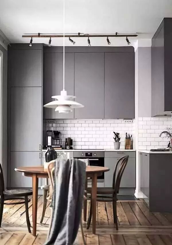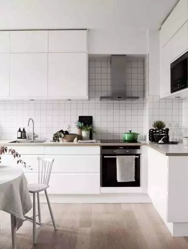 厨房铺地板后,无论是和现代风格还是北欧风日式风格都很搭。木质很容易传达出温暖细腻的感受,用在厨房,会让人在使用时多了几分小心和温柔。