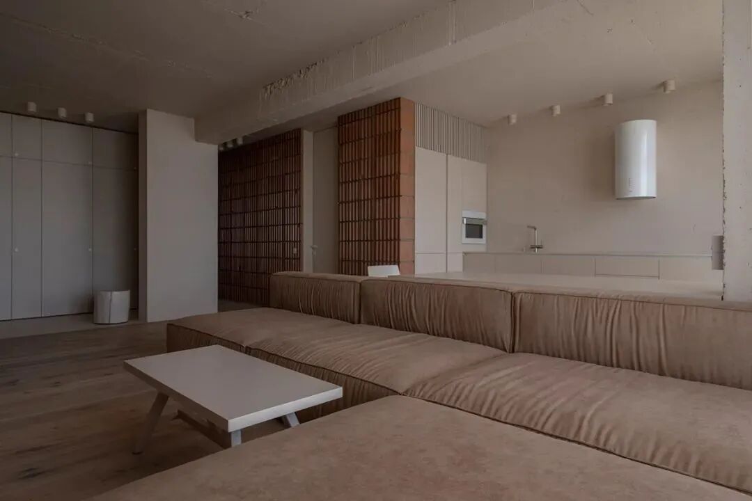 粗糙裸墙全面刷涂暖米灰色调