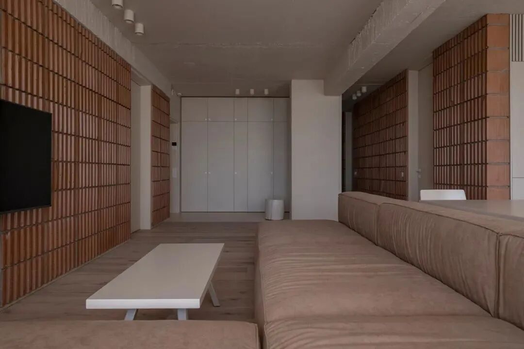 任由赤红陶砖的波浪感线条蔓延一室