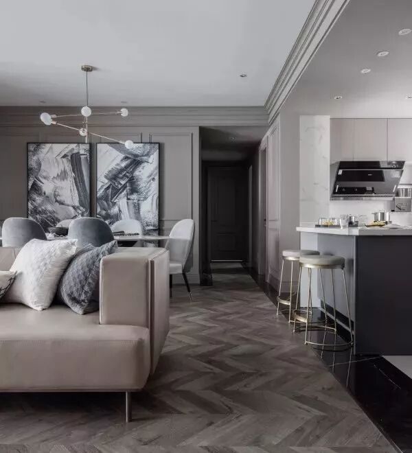 简约高端、轻奢的装修风格中,更适合选择偏灰调的木地板,这种灰色的自然,会显得更加高冷档次!