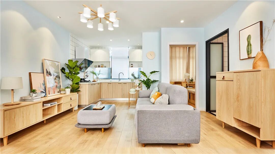 整体装修风格是时下最受年轻人喜欢的原木风格,木色系总能搭配出最舒适的天然感,原木色的木地板,