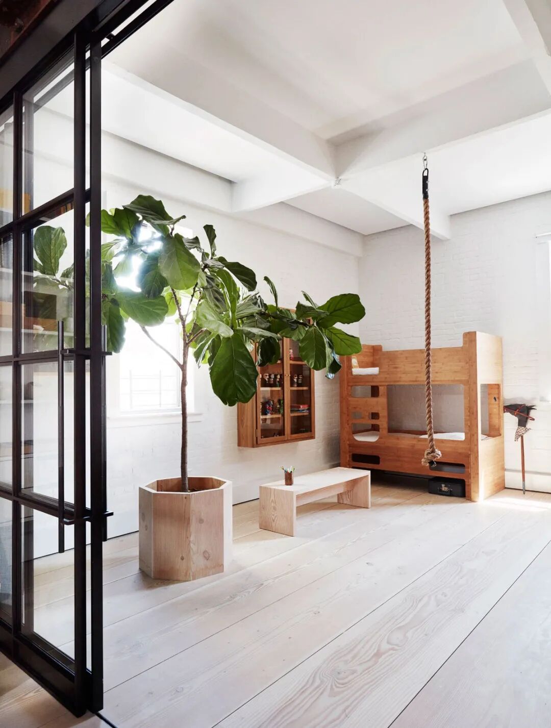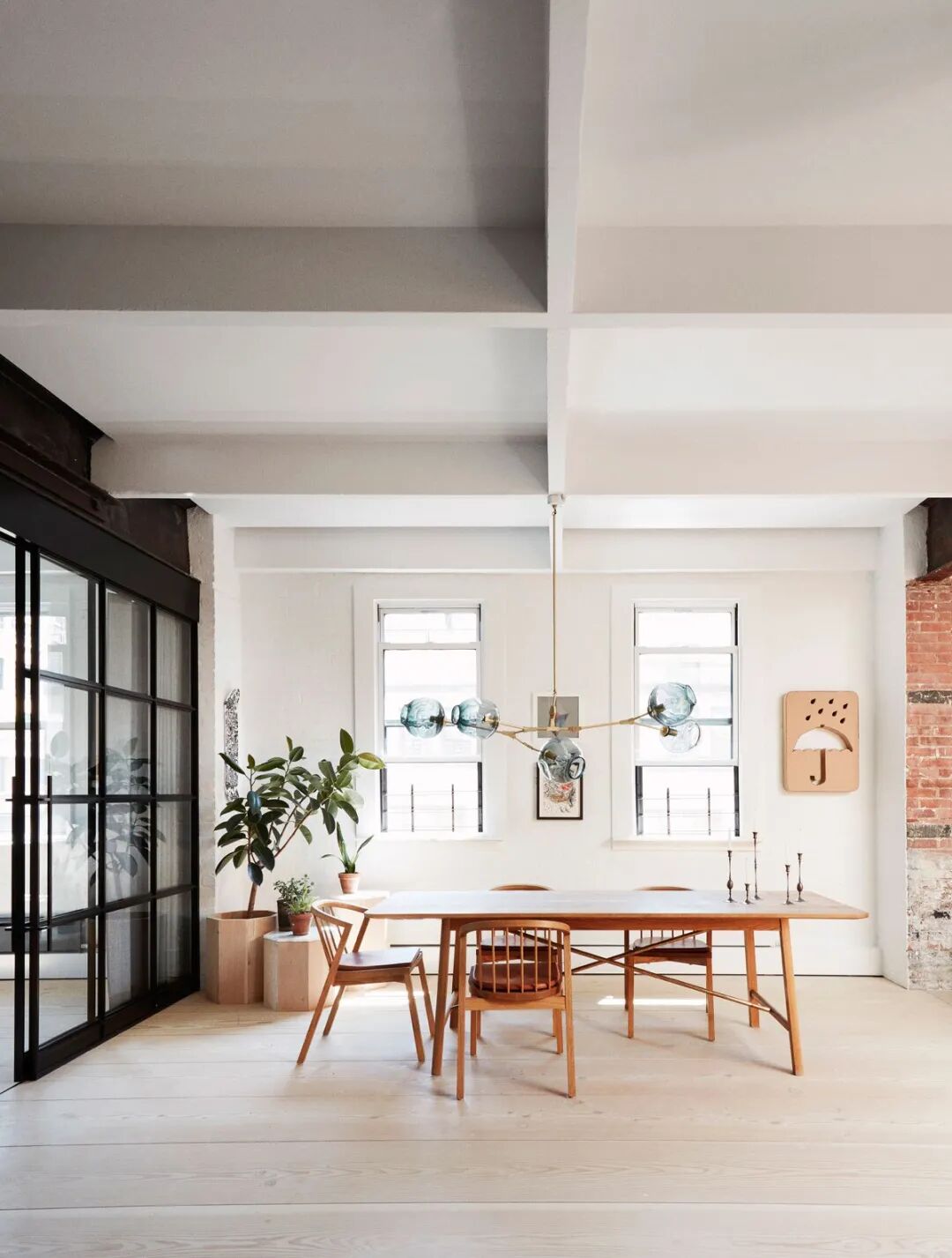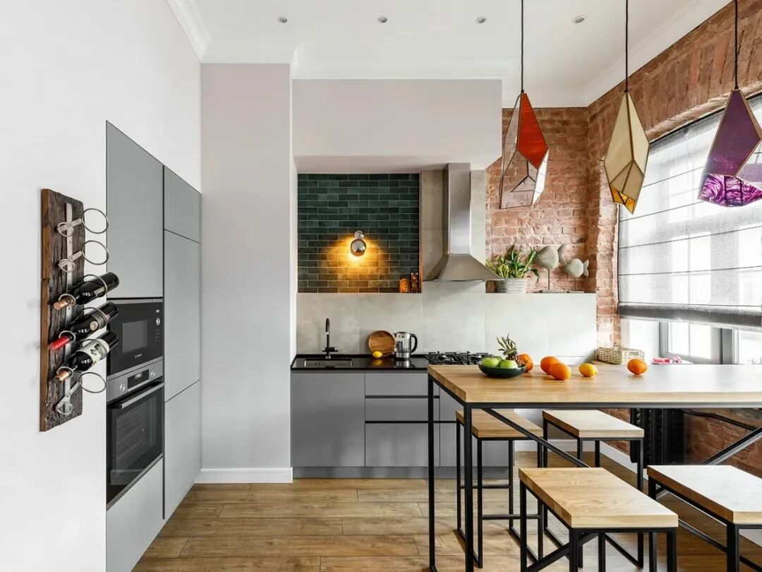 工业风也可以很细腻,比如【北欧工业风】,清新的北欧风气质冲淡了工业的粗粝感,红砖墙和大白墙碰撞,极浅的原木地板即可缓冲红砖墙的热烈,也能搭配大白墙的冷淡,一盆绿植,一套原木家具,一如印在脑海里的童年画面,红墙工厂、院子边的绿荫大树、院子里趴桌子上写作业的我们。