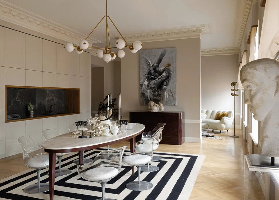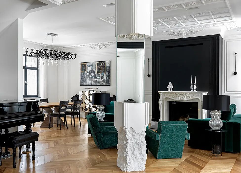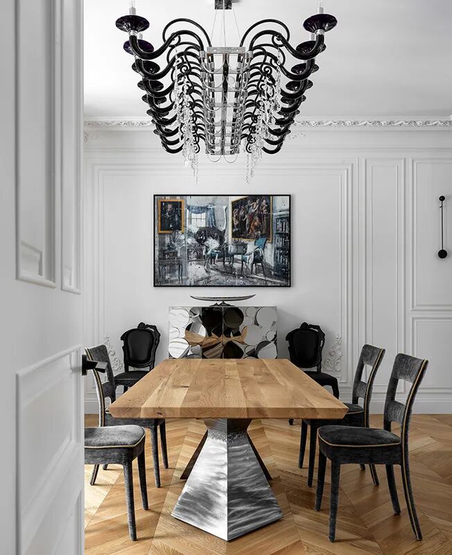木质、石材、金属,是法式风格中常会运用的元素,温润的木地板包容着金属的锐利和石材的粗犷,硬朗的线条融化在优雅的线脚间,又摩登又浪漫。