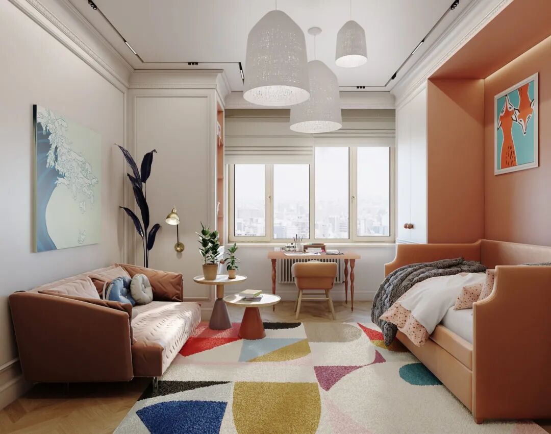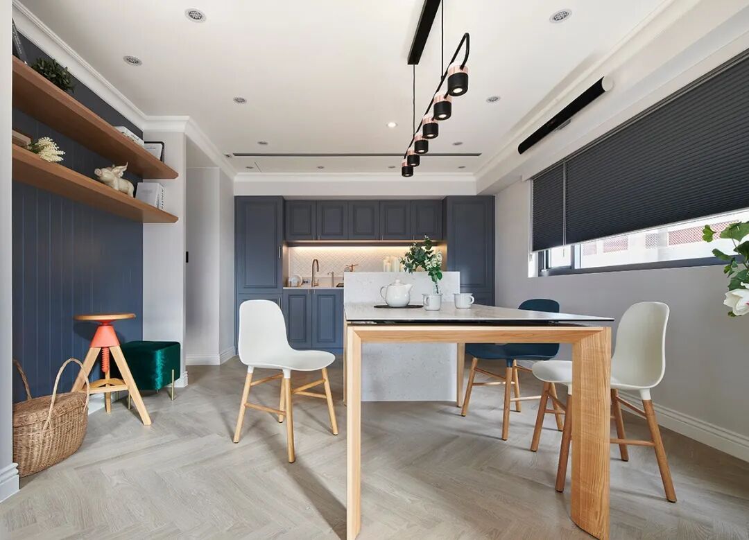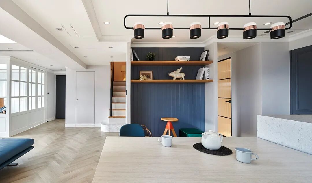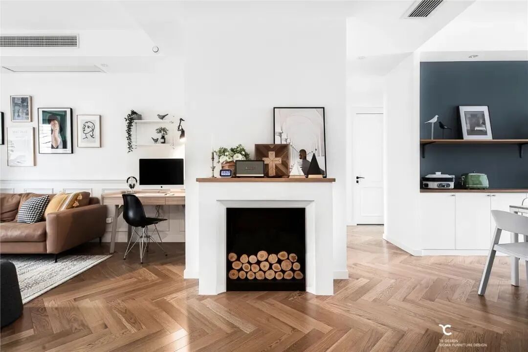 在这个案例中,设计师使用了大面积的留白,让家在入住后的岁月里增加不同的使用功能,也或是孩子成长中的一张照片,也许是全家旅行的记录,也或许是客厅角落的墙体上增加的一个书架。