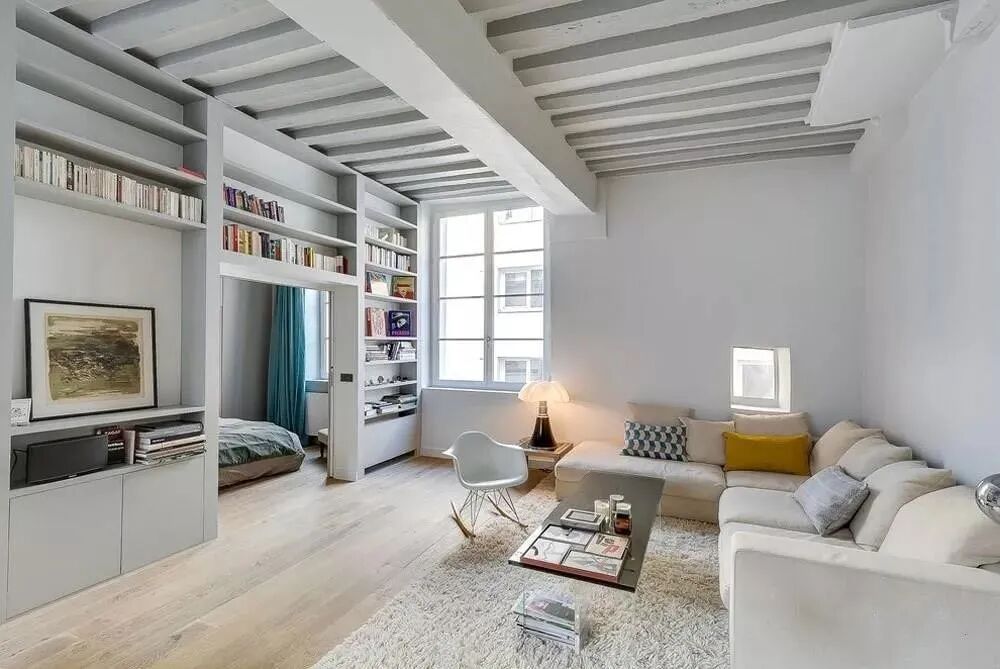 大白墙+木地板的经典搭配就是如此。