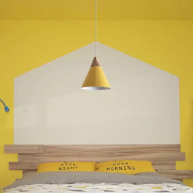 11▲拼出一个不规则的床背,和黄、白色漆刷出的几何墙面搭配出童趣,不规则的动感。