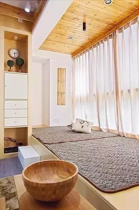 △整面墙上都是木地板,当阳光照过来,让空间显得更为温润。