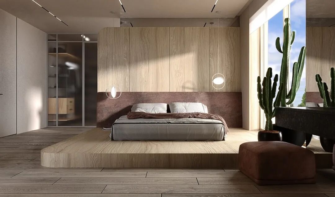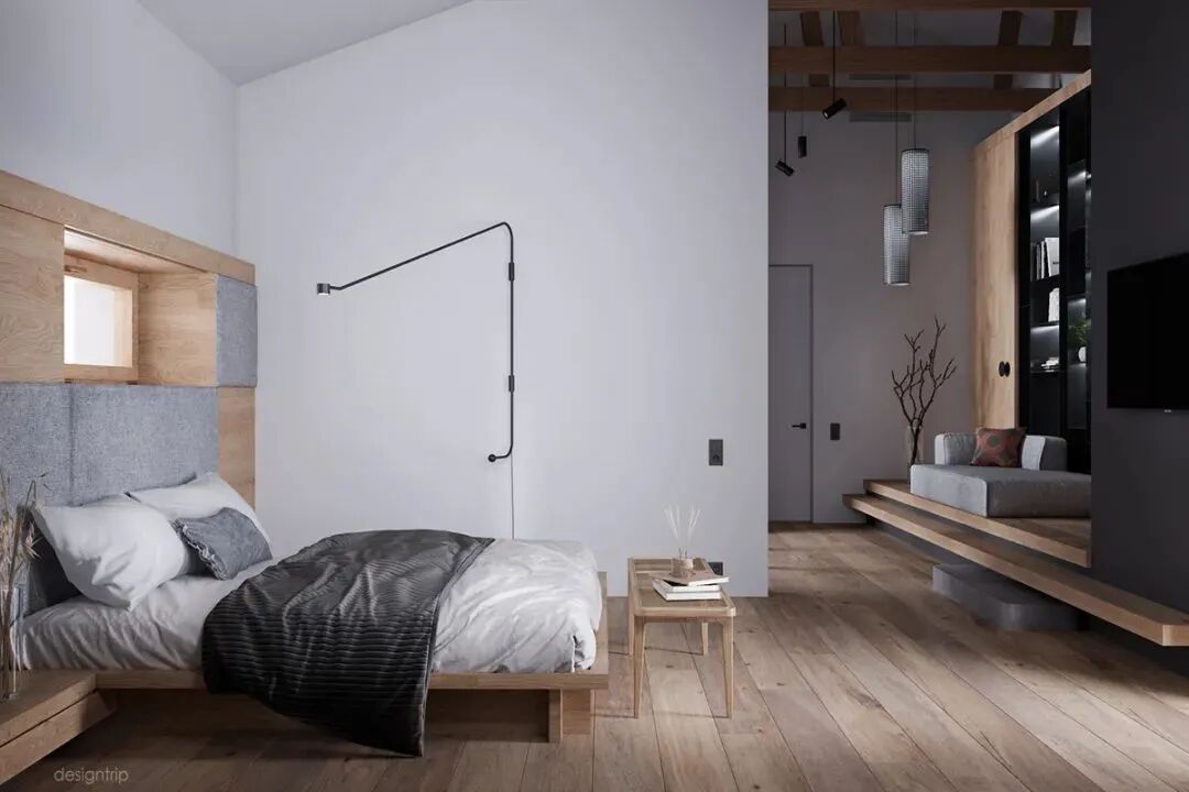 木地板+地台床,打造极简艺术空间,让美感与质感于生活中无限延伸!