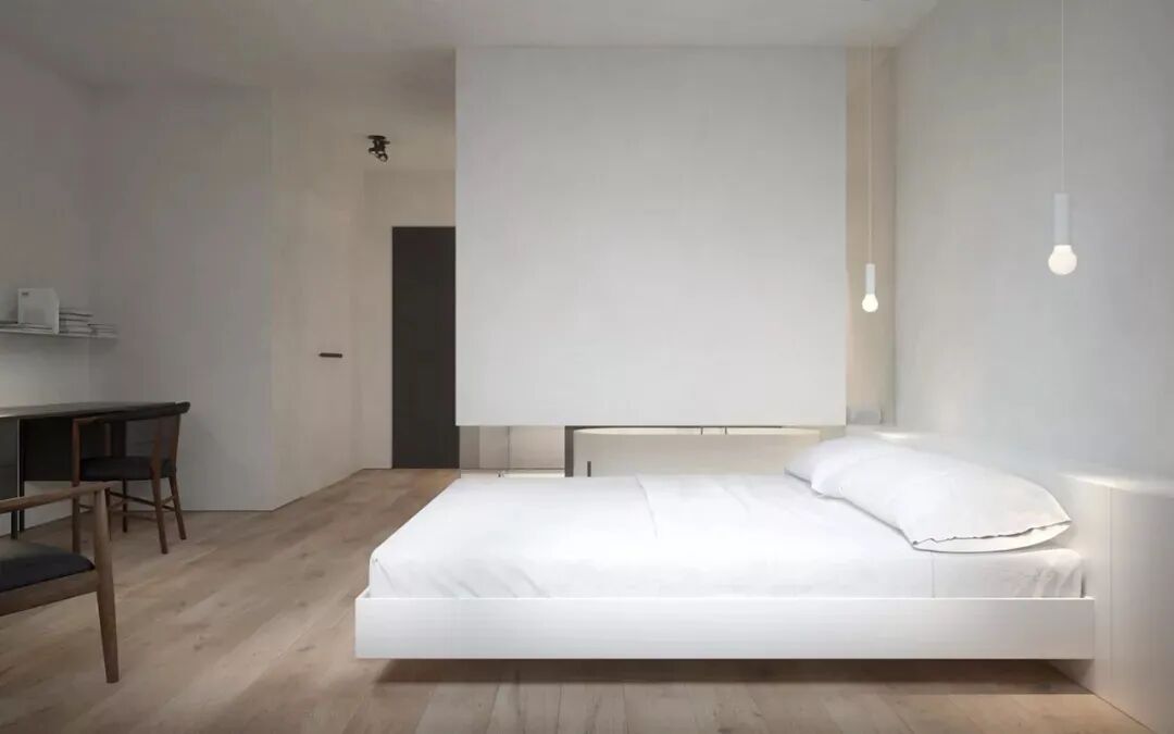 一览无余的卧室设计,摒除了多出的陈设,白色地台床与原木地板搭配,彼此呼应,给生活腾出更多的遐想余地。