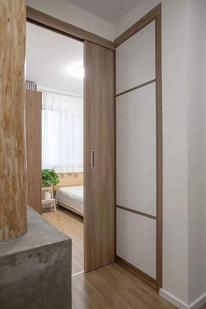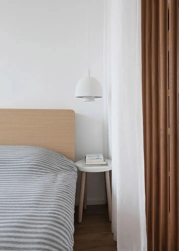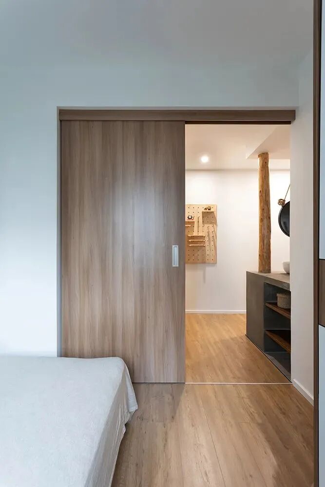 ▲次卧空间在谷仓门的后方,整体地面保持统一的浅木色地板,整体空间的风格保持统一自然的氛围感。