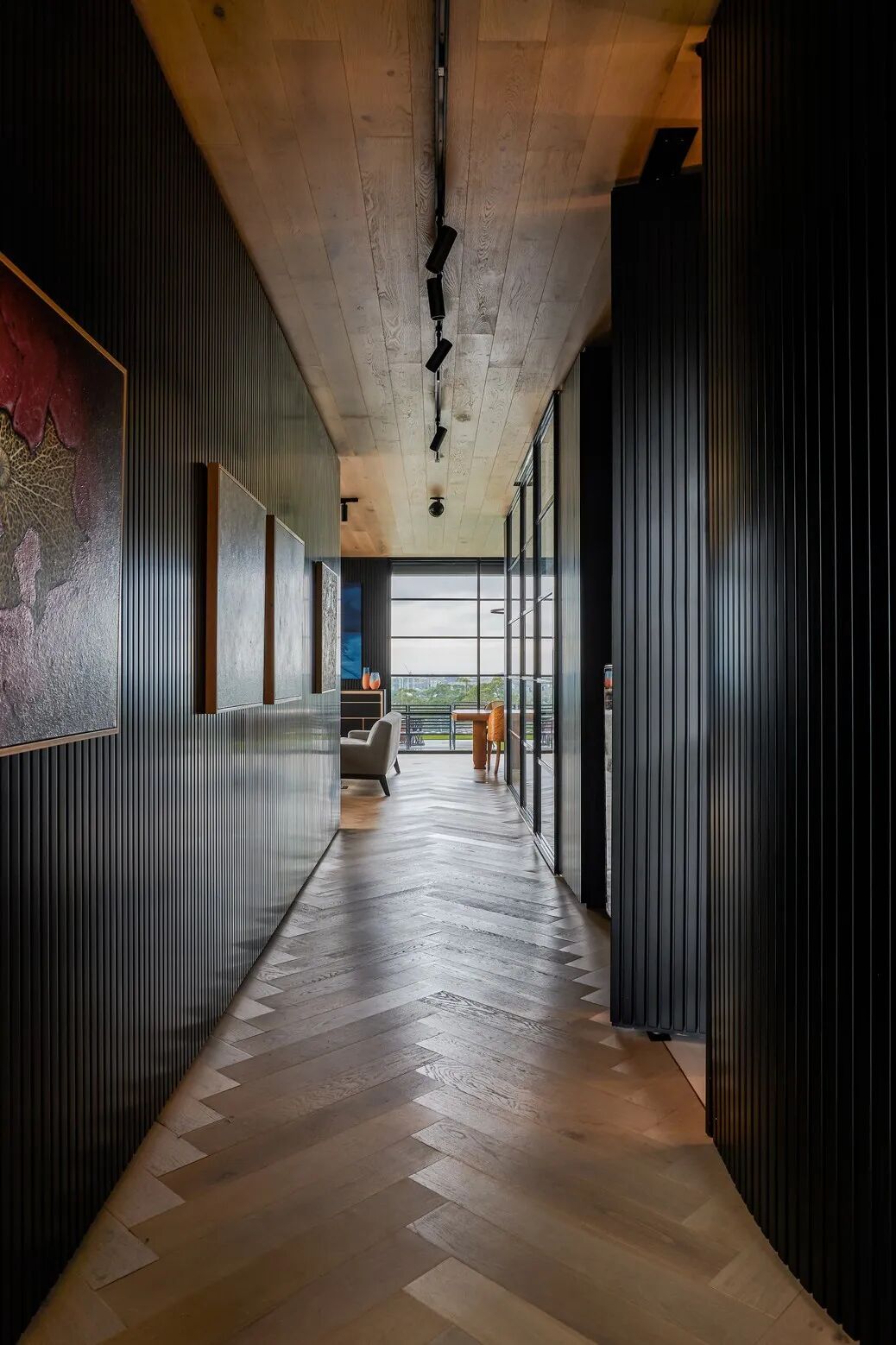 铺到客厅顶部的木地板,与地面相呼应,在如沐春风的视觉体验中,展示给众人浑然一体的安然意境。