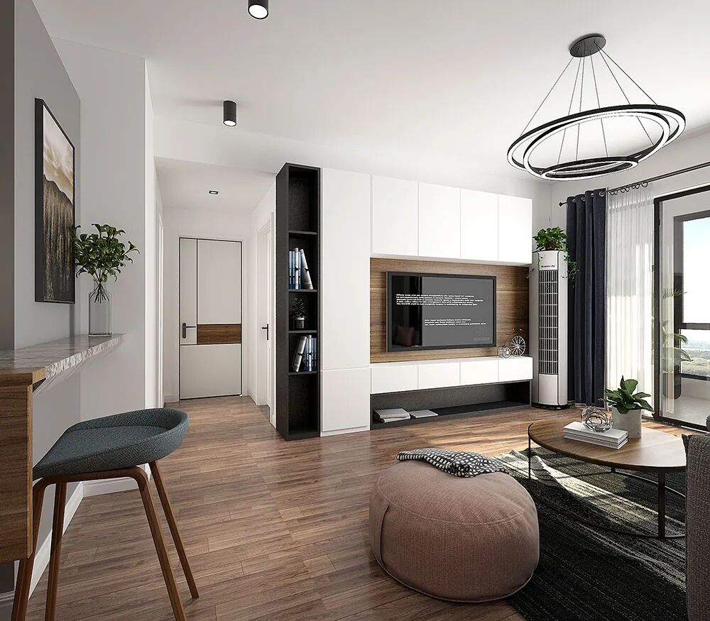 北欧+胡桃色地板