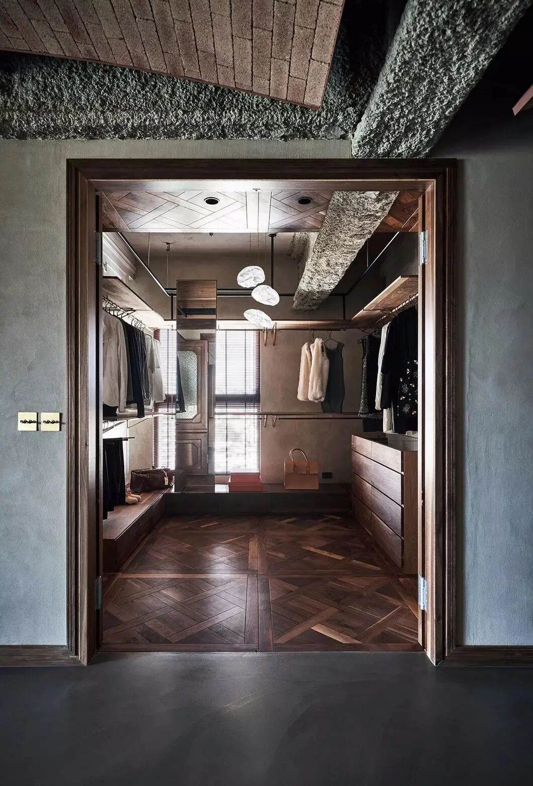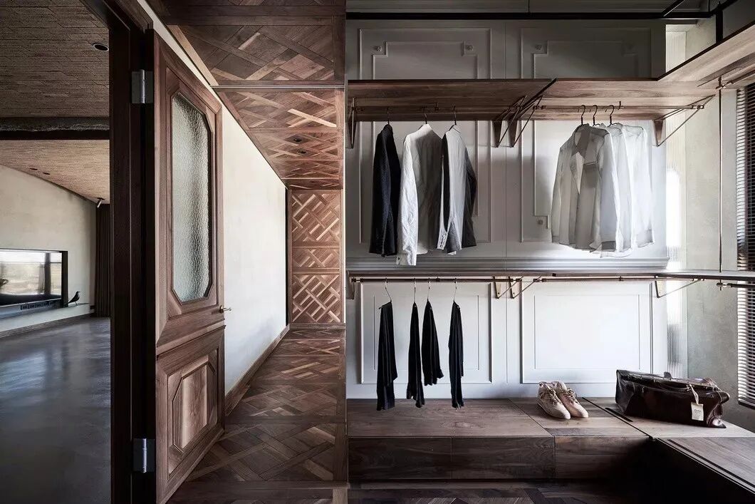 这绝对是家居君见过最为惊艳的衣帽间之一。如果你以为这只是装修的有些复古好看的普通衣帽间就错了。